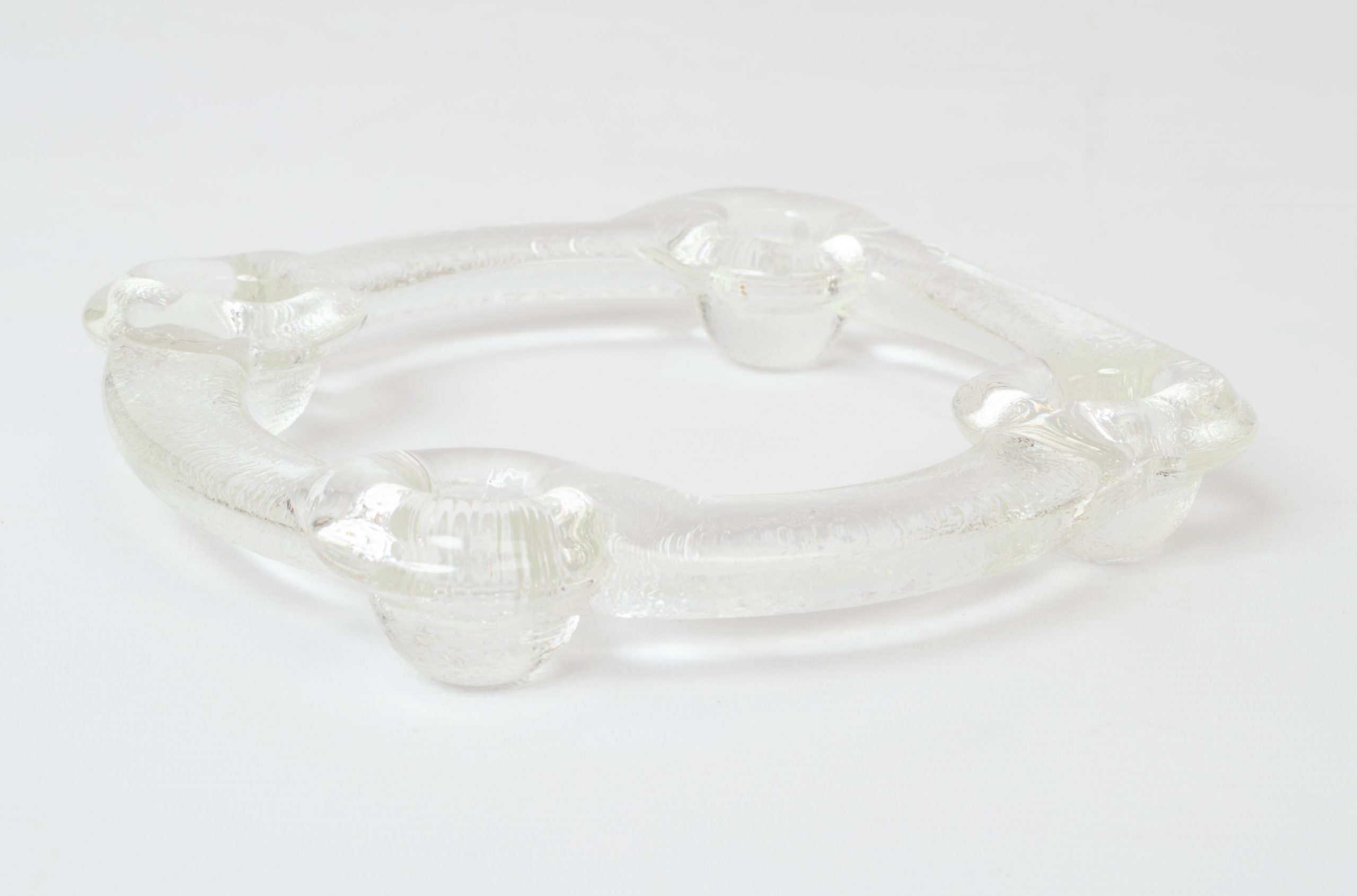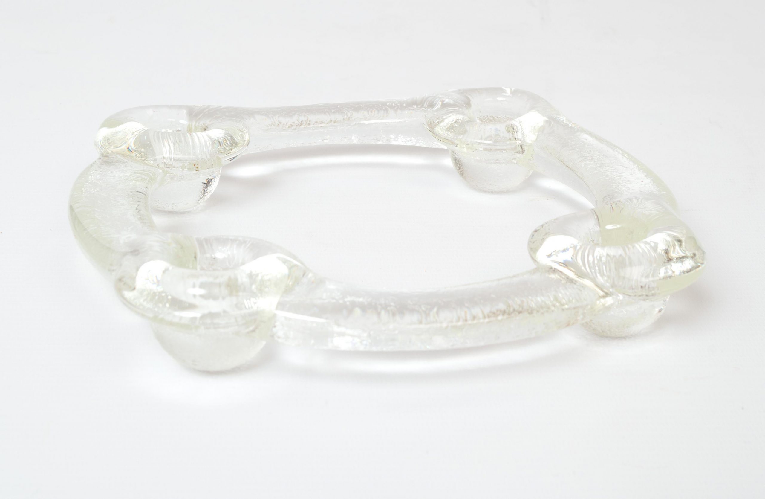 A textured art glass candleholder by Staffan Gellerstedt For Pukeberg Glassworks of Sweden C.1970. Designed to hold regular sized candlesticks. In excellent condition commensurate of age.