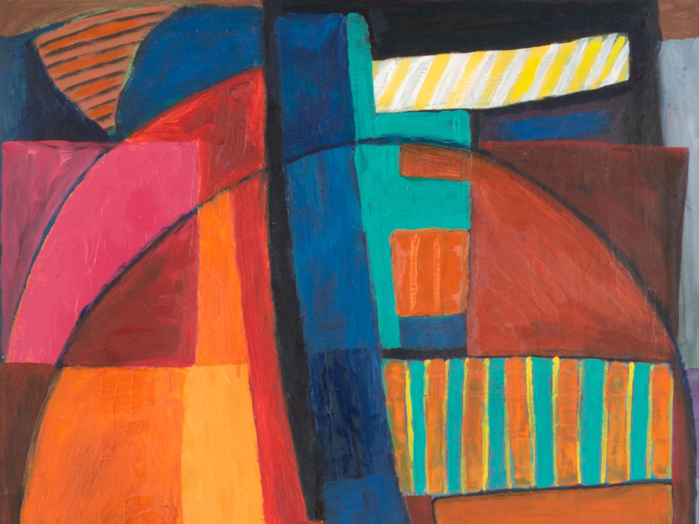 Mid Century Danish Geometric Abstraction Oil on Board by Johannes Obel, C.1950