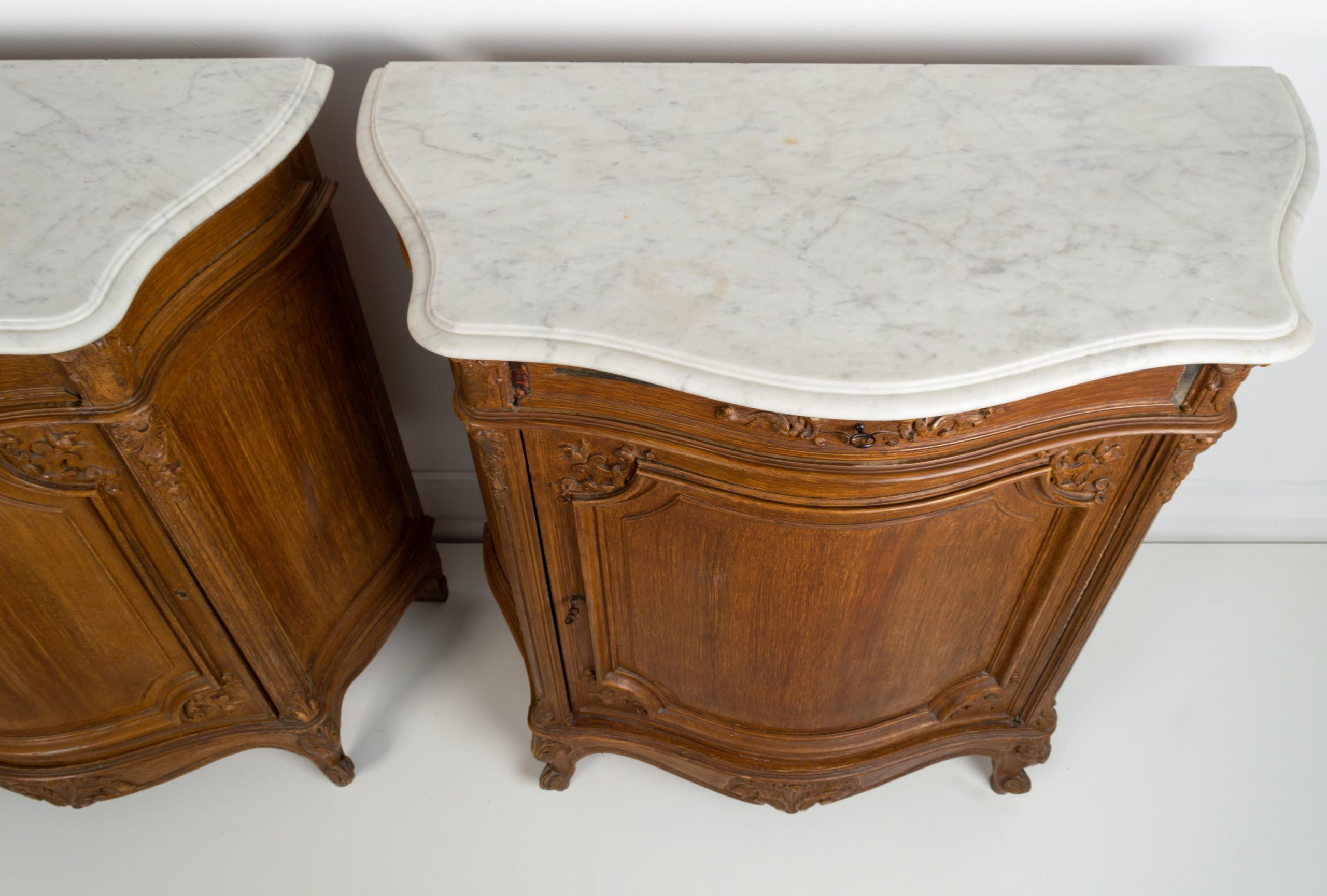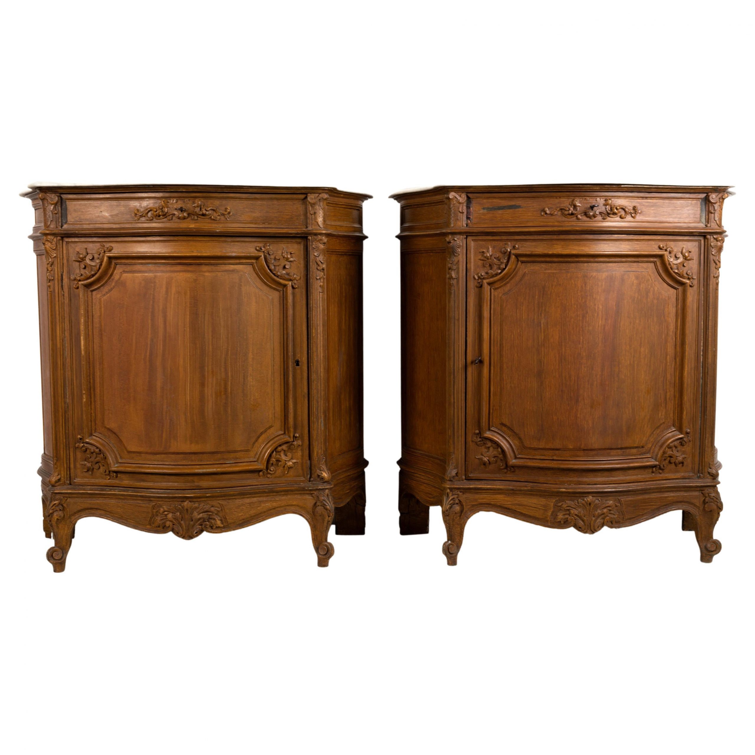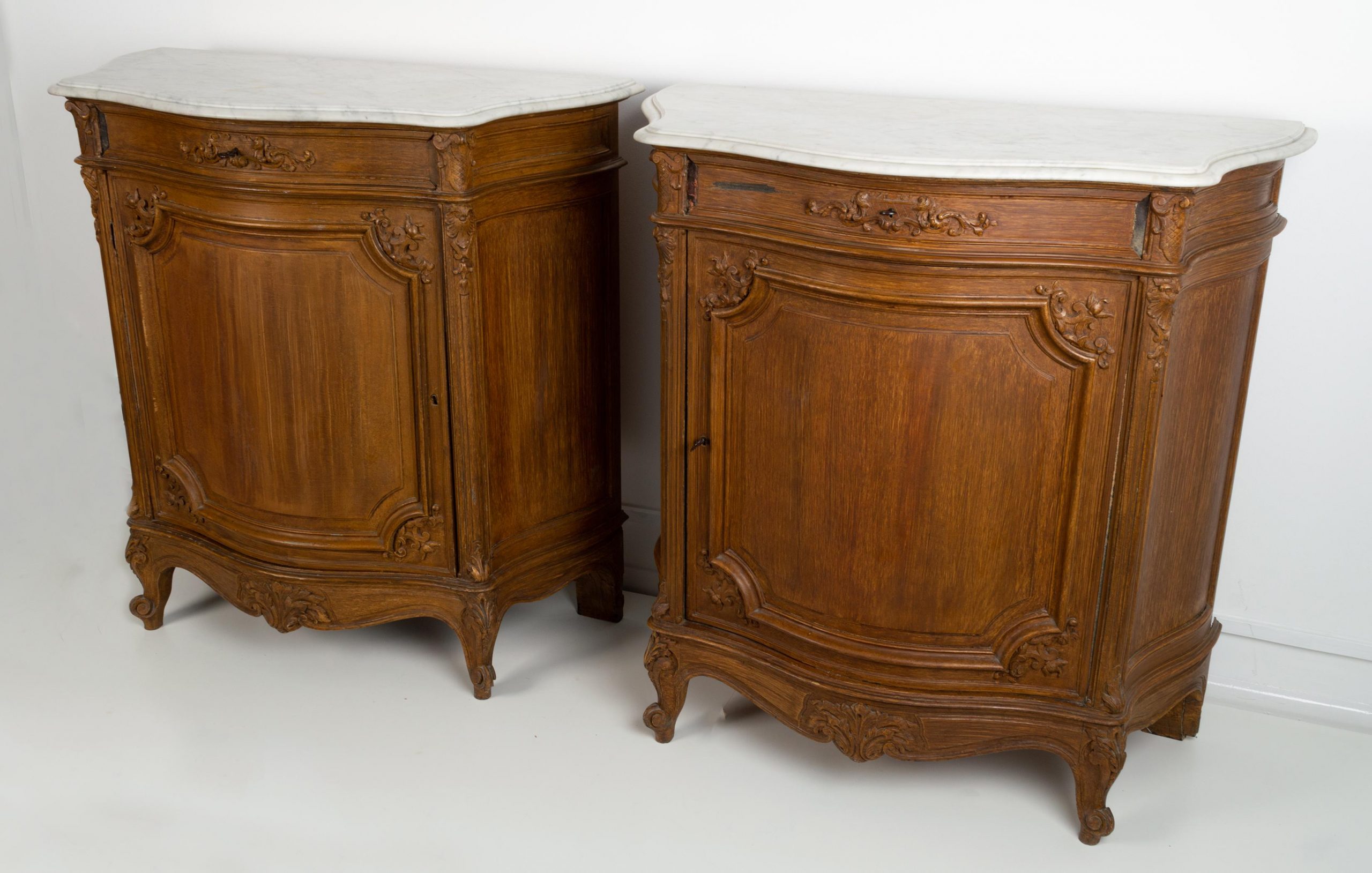 Pair Antique 19th Century French Marble Top Commodes Credenzas