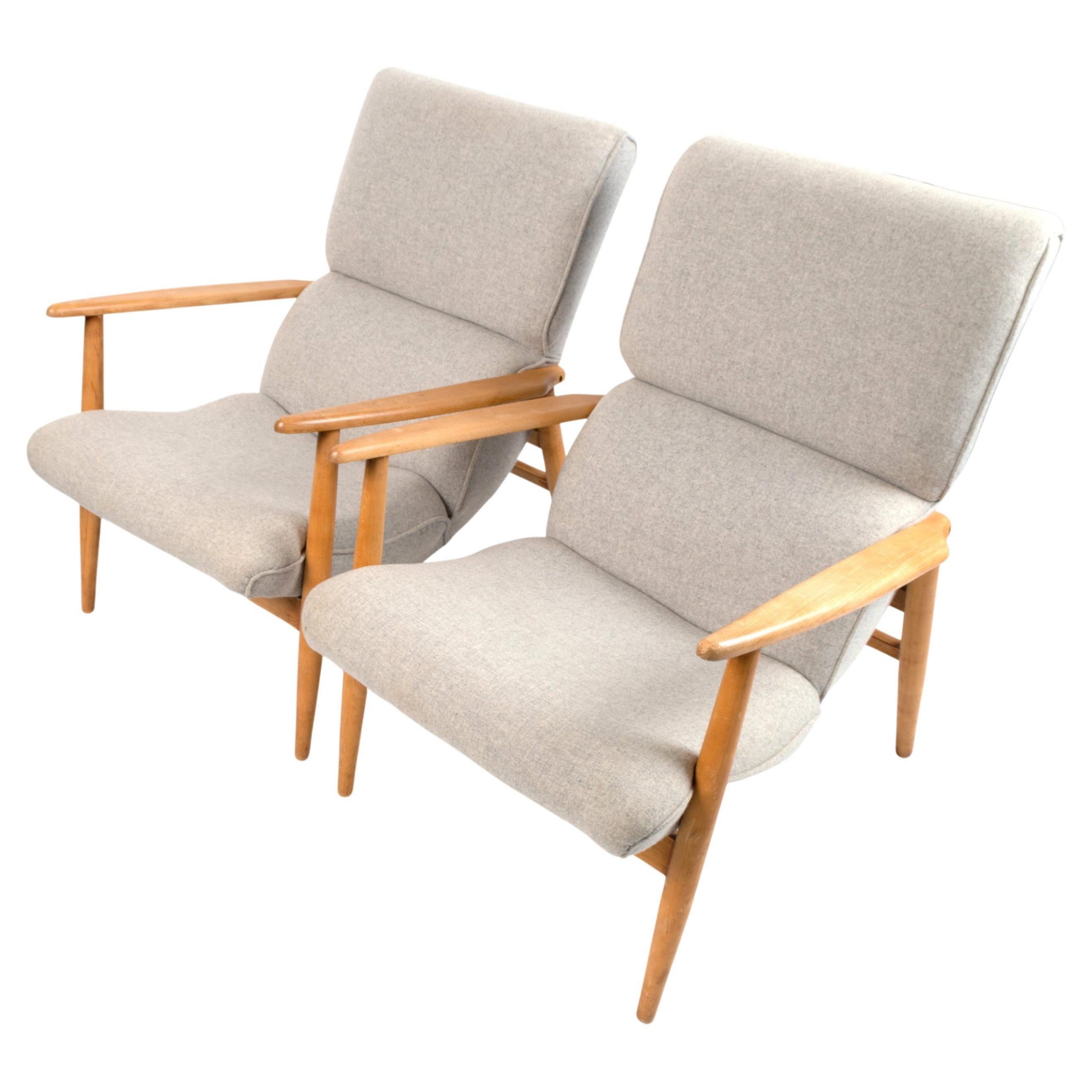 Pair of Mid-Century Danish Lounge Chairs Armchairs Denmark, C.1950